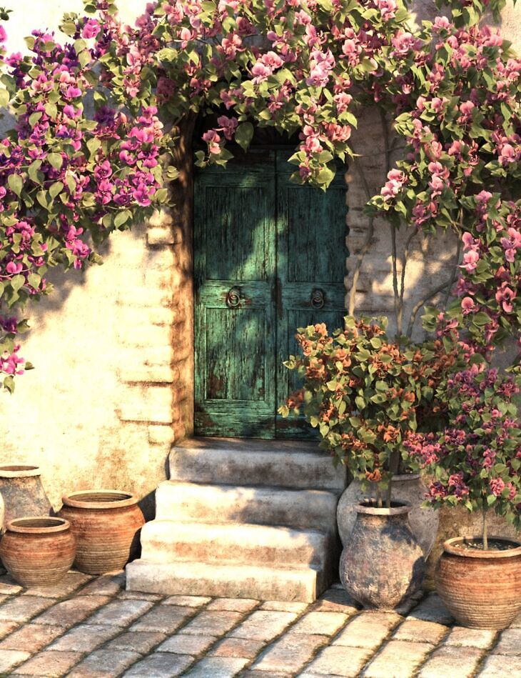 V176 Like A Painting Vignette is like a Mediterranean, sun-drenched late afternoon among blooming shrubs.