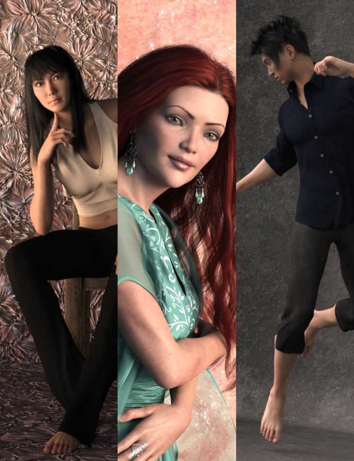 With lights, we can achieve dramatic effects in the simplest way possible. I also made male and female poses for a quick start and put together 1-1 unique scenes for each.