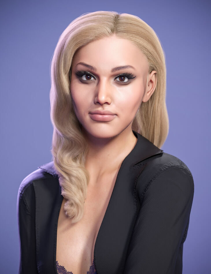She is created for Genesis 8 Female and Genesis 8.1. She comes with two skin shaders for each Genesis version. Included are several make-up options, eyelash options and nail colours.