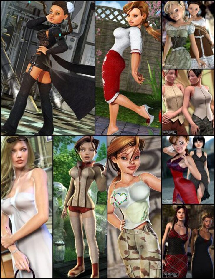 The V4 Unimesh Clothing Bundle brings together nine of Victoria 4's most popular outfits that now contain fits for all of DAZ 3D's female unimesh characters including the Girl 4.