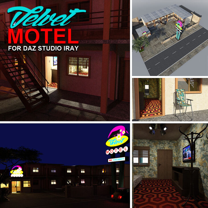 - 17 Props that allow you to build the motel to your liking.Bedroom, batroom, room furniture, vegetation, etc...