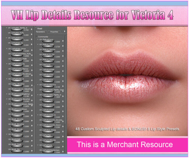 This is a Merchant Resource. Specially Created for Those who like to create custom Lips for their Victoria 4 Figure.