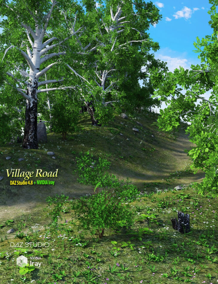 Many travelers and carts passing through a birch forest filled with the scent of wild flowers. Wanderers on this road can forget about their fatigue. Nature is reminding them of the beauty of world and enveloped them with the energy of a sunny day.