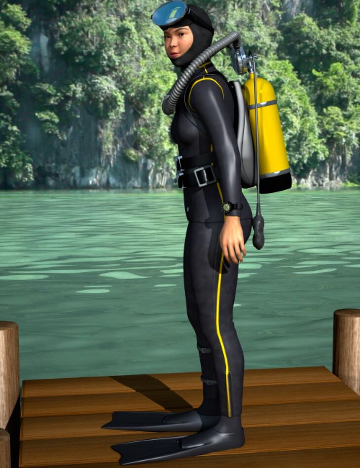A classic twin-hose-aqualung for your underwater adventures. It comes with an oval dive mask, a pair of full-foot-fins, a compass and Iray support.