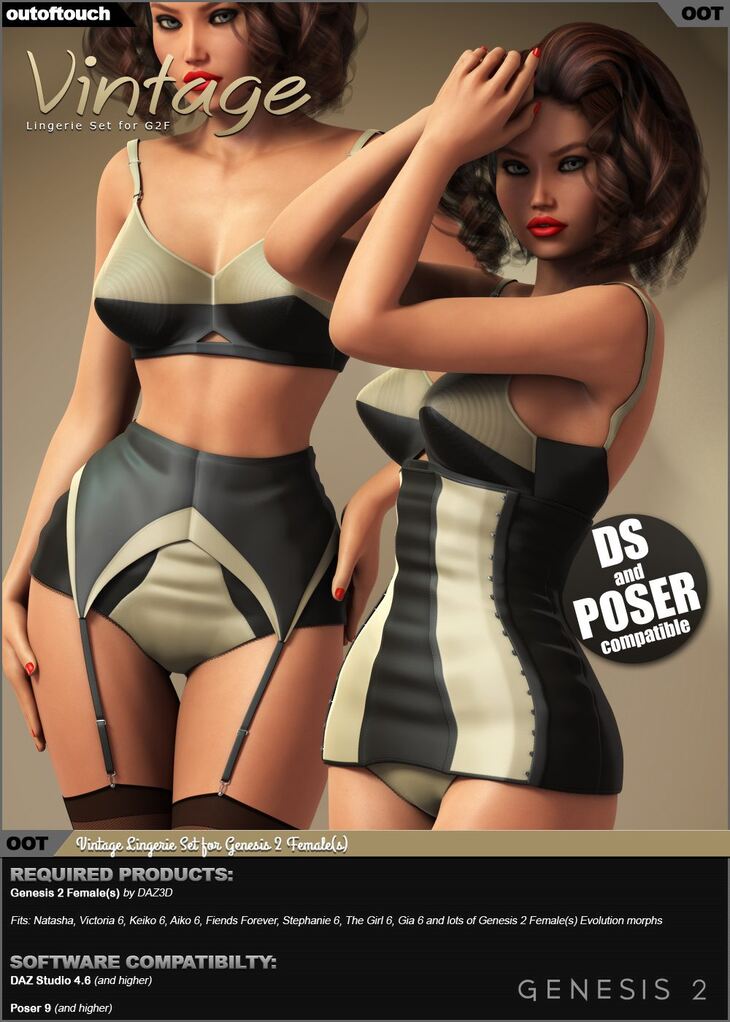 Vintage Lingerie is a high quality conforming lingerie set for Genesis 2 Female(s).