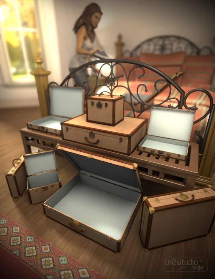 Take a trip back in time, or anywhere else, with this sleek set of vintage luggage. Included in this four piece set is a large suitcase, a smaller suitcase, a briefcase and a train case, perfect for carry-on. Each piece is detailed in a two-tone worn leather outside, with a light blue interior lining, accented by either gold or black metal hardware, including corner guards to protect from bumps.