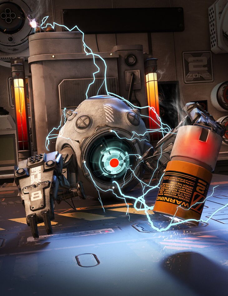 Many robots are designed to make life easier, but some are designed to electrocute anything that moves. The Volt Bot is that last kind. But the Volt Bot's on your side, so it's a good thing.