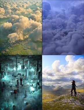 Volumetric Clouds for Iray comes with custom-made cumulus clouds for Daz Studio Iray. Each cloud utilizes the volume shader and rendering features of Iray and comes parented to a non-rendering example mesh for easy placement of clouds.