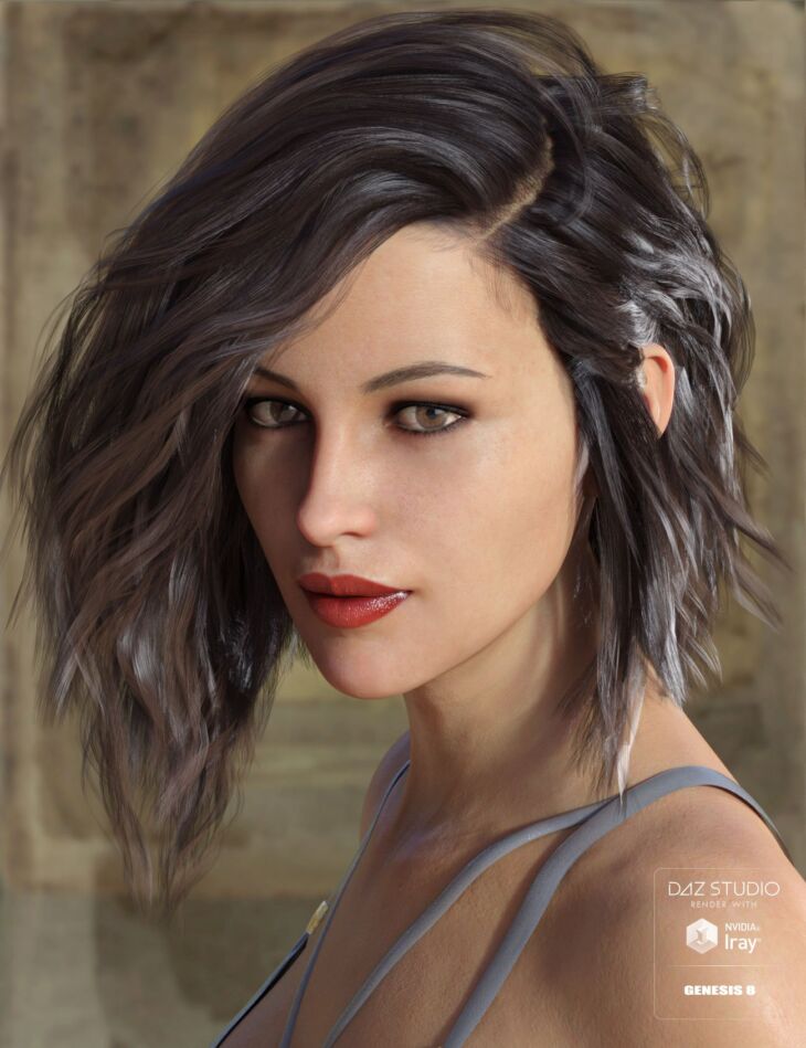 Voss Hair is a morphing, polygonal model of a long, wavy, asymmetrical bob. Along with the style and movement morphs, ERC pose control dials help fit your figure poses beyond the 10 sample hair poses provided. The hair is fitted for Genesis 3 Female(s) & Genesis 8 Female(s) (.DUF) with auto-conforming custom morphs for Daz Original characters.
