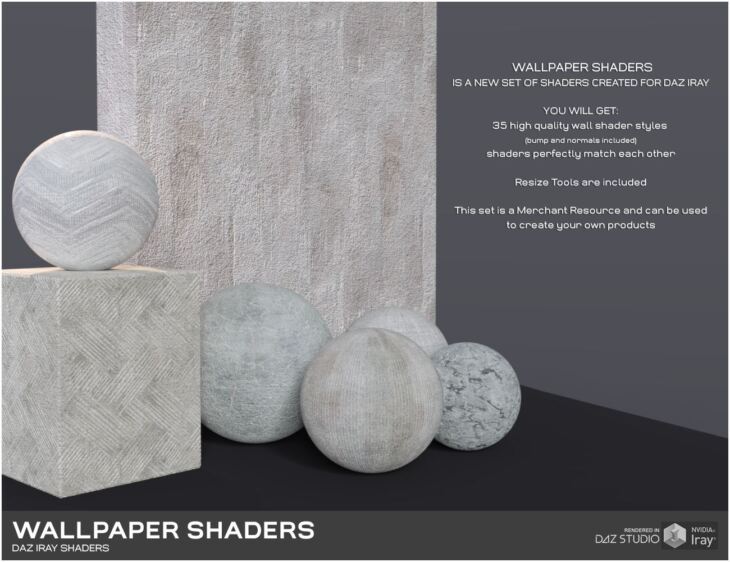 Wallpaper Shaders - new set of shaders credted for Daz Studio with Iray. This set is a merchant resource and can be used to create your own products.