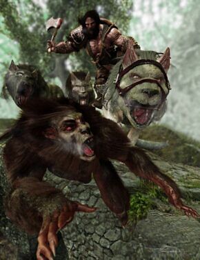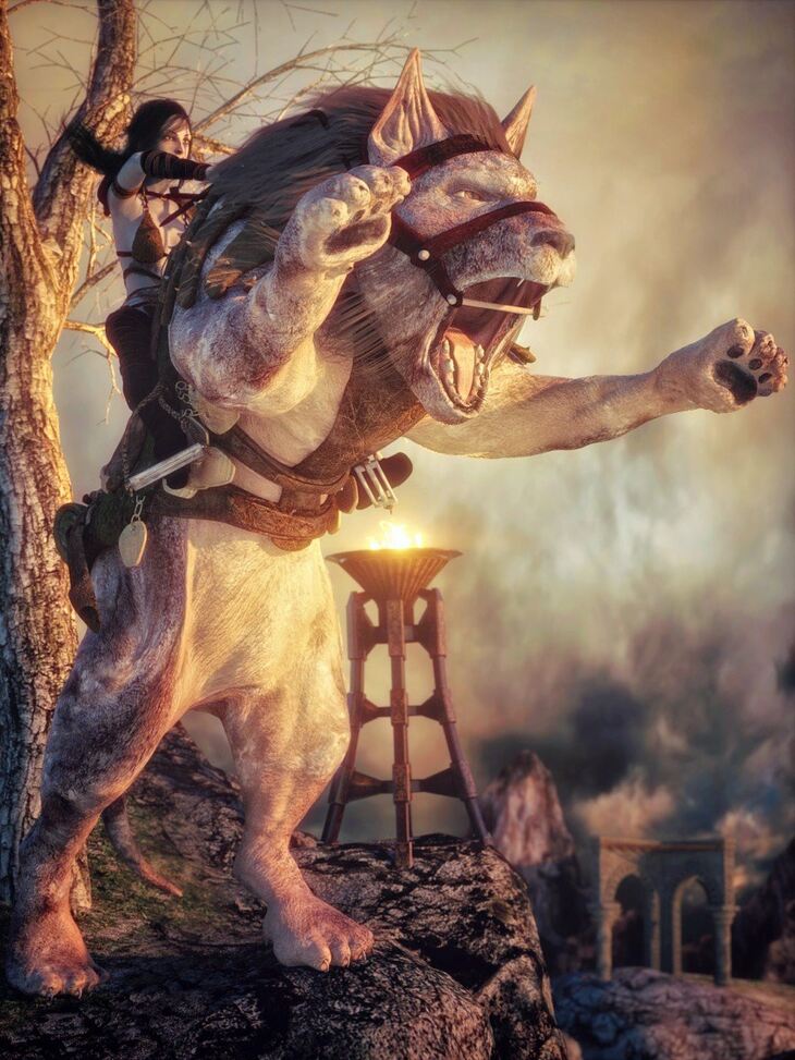 Fantasy cavalry add on's plus bonus rider and steed poses for Genesis 3 Male and Genesis 3 Female interacting with the Warbeasts: Uhrag original figure.