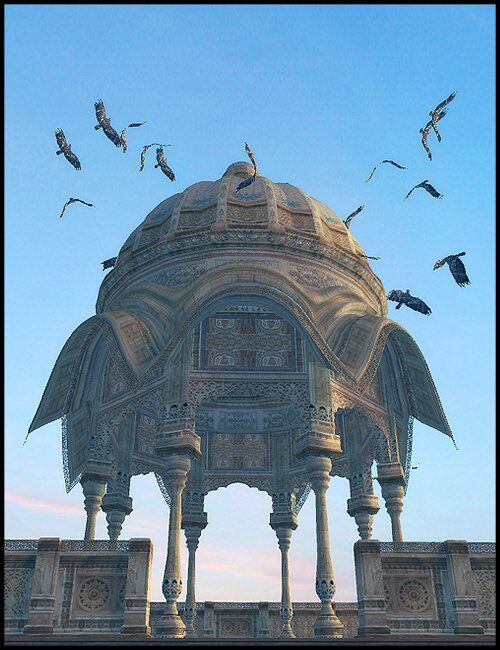A detailed and ornamental water temple inspired from India.