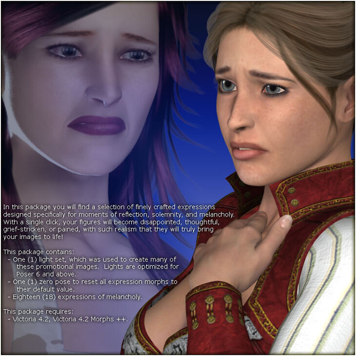 In this package, you will find a selection of finely crafted expressions for Victoria 4.2 designed specifically for moments of reflection, solemnity, and melancholy.