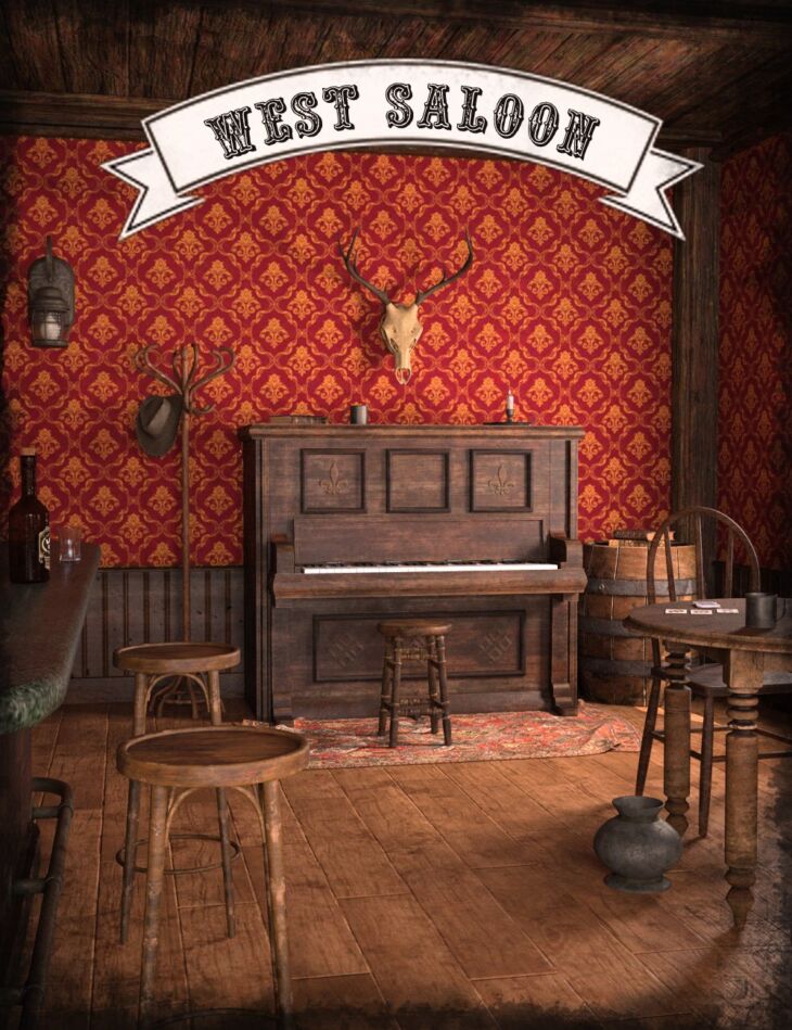This complete interior scene Western-style wooden saloon includes complete day and night scenes.