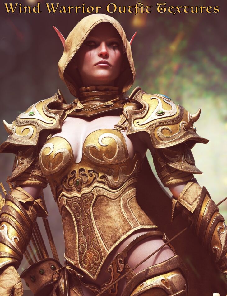 Four textures for Wind Warrior Outfit with dForce for Genesis 8 Female(s) and fifth bonus texture for armor - Iron Wind Warrior. Product contains 10 One-click Wearable Preset Outfit Variations.