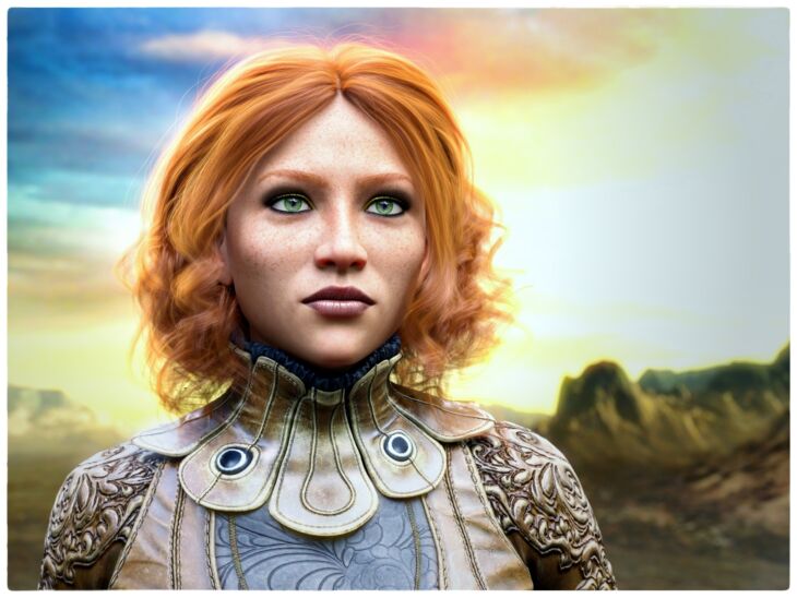 WkD3D Estrid is a versatile character for Genesis 8 Female. She can be a fair skinned Scandinavian blonde, or a freckled celtic redhead. She also comes with 2 woad facepaints - perfect for turning her into a fearsome rampaging dark age warrior queen! From medieval, to steampunk and sci-fi, she can fit right into any genre.