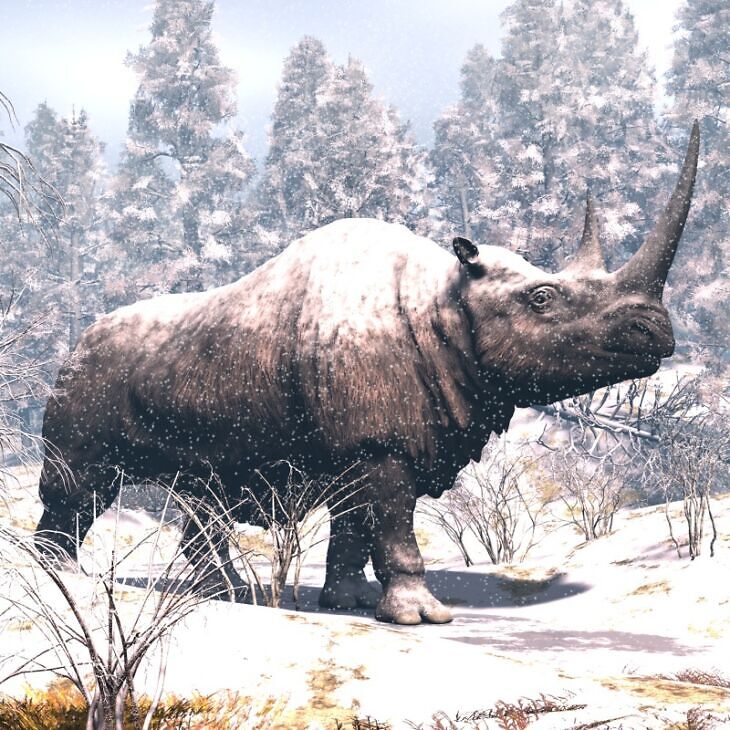 The woolly rhinoceros (Coelodonta antiquitatis) is an extinct species of rhinoceros from Europe and Asia during the Pleistocene epoch and survived the last glacial period.