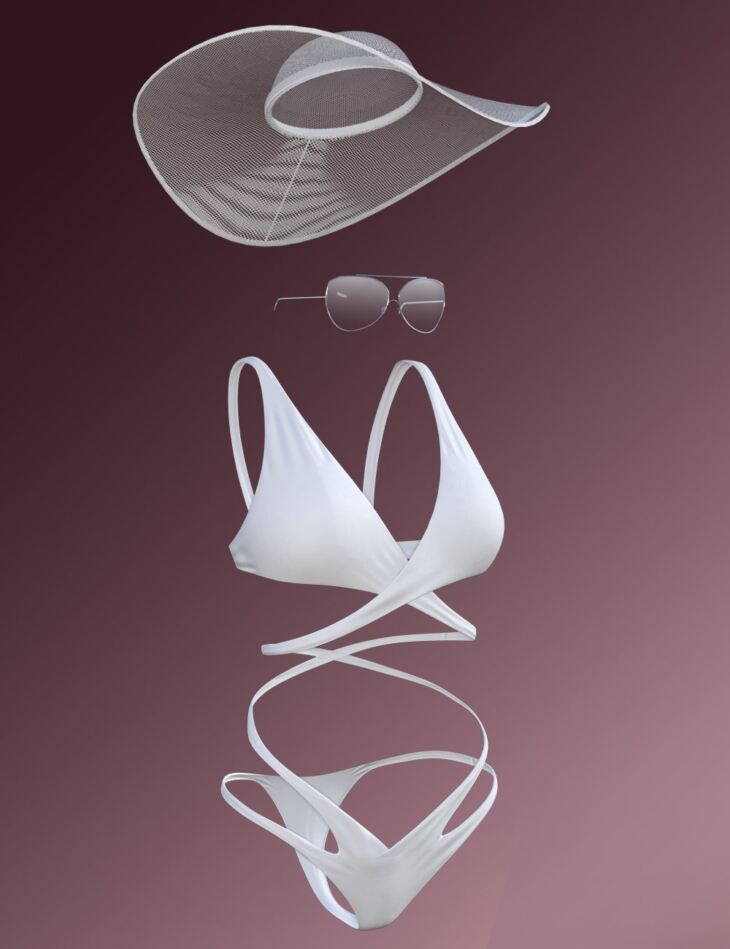 The X Fashion Color Cross Swimsuit Outfit for Genesis 8 and 8.1 Females is a bright, fashionable summer outfit. It includes a swimsuit, sunglasses, and a sun hat — all with several colors to choose from to fit your mood.