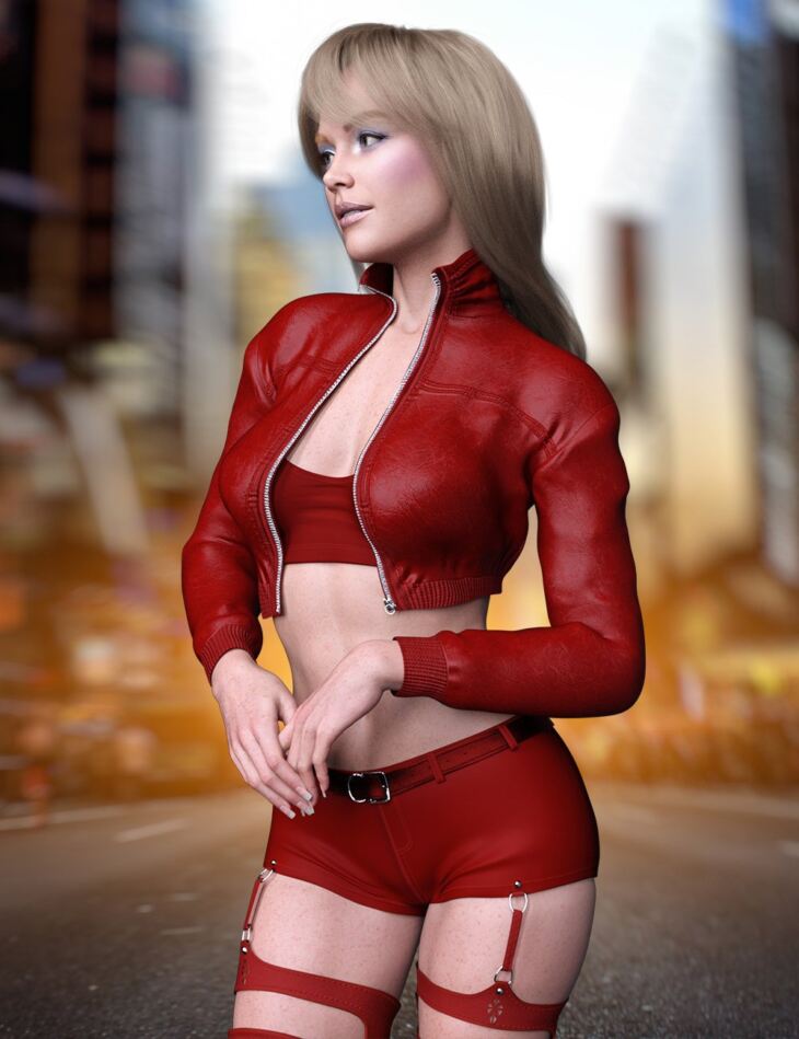 X-Fashion Hanna Jacket Outfit is a leather outfit with a jacket, top, shorts, and stockings, all in 8 Colors.