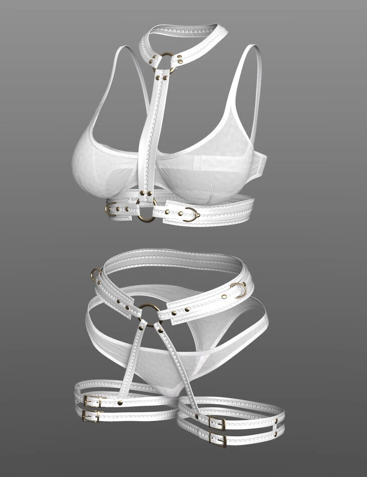 This is a sexy fashion set that comes with 12 material presets for bottom, harness, and top.