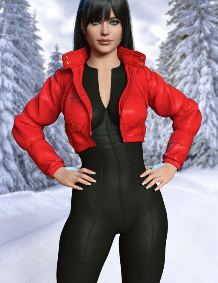 X-Fashion Winter Outfit for Genesis 9 is a complete Winter Outfit with a jacket, bodysuit, and boots in 12 color materials included.