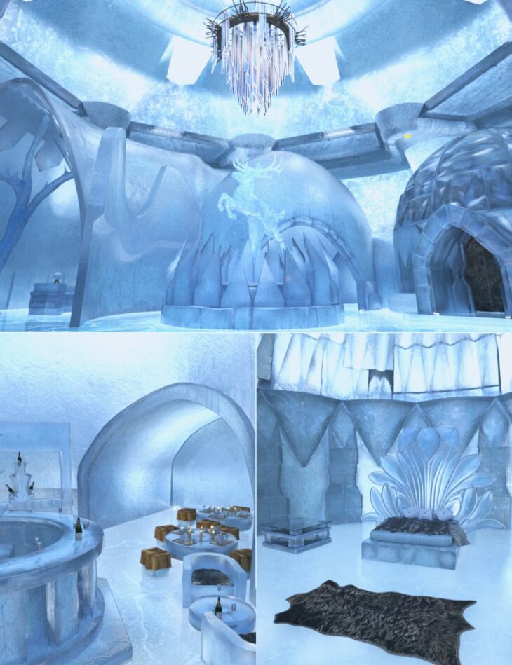 Winter is here! Stay in the hotel made of Ice, the Frozen Hotel is made up of a lobby, bar, reception, and a room.