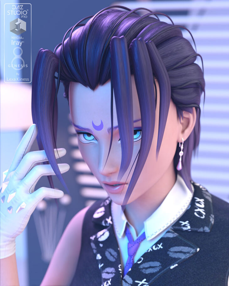 This anime hair style is created for Genesis 8 and 8.1 Female. It is smoothing around the head and faces automatically, with that the hair fits (almost) all character morphs pretty well.