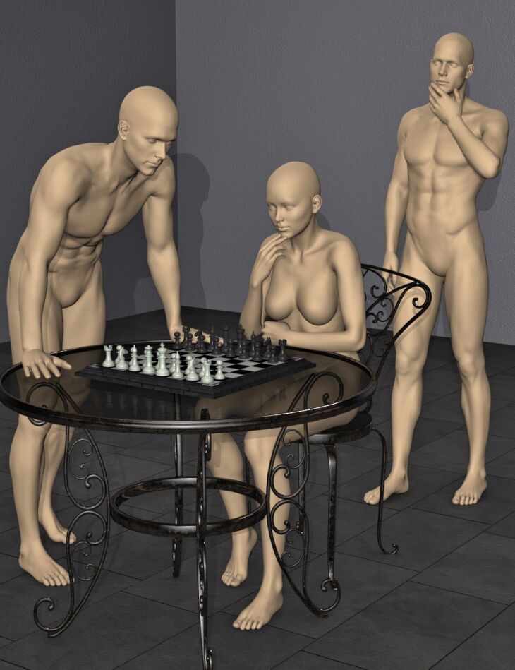 Set includes 8 seated poses and 3 standing poses for both V6 and M6 each with mirrored versions. Set was created using the round table and chair from "Fancy a Game of Chess" but can be used with any table and chairs though minor adjustments to furniture or poses may be necessary.