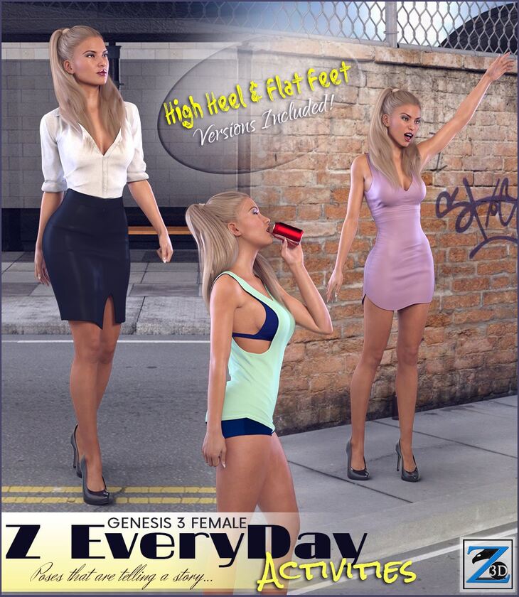 30 Stunning Utility poses for the Genesis 3 Female(s) + 30 Mirror Versions. As a bonus, both High Heel & Flat Feet versions included for greater variety!