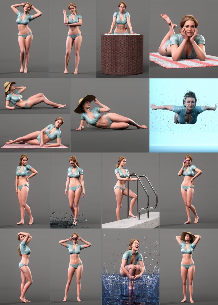 All of the poses have been carefully created for Genesis 9. The set includes 25 base poses, plus mirrors, with a focus on the little details, such as lifelike hands, natural positioning, and realism.