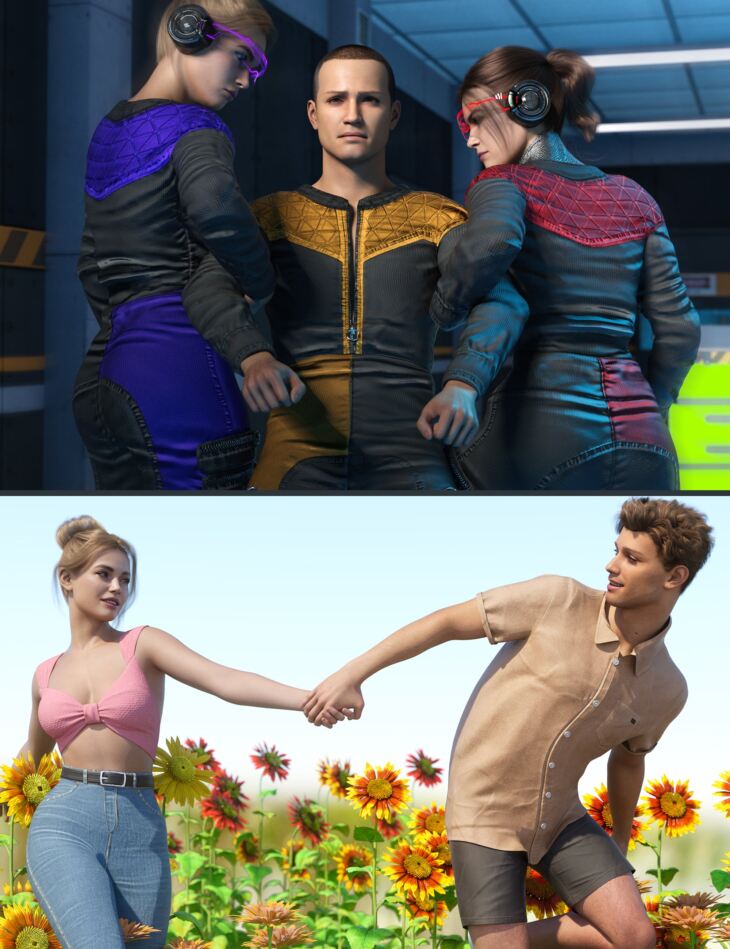 Z Pulling and Dragging Couple Poses for Genesis 9 and 8 Female is a collection of essential utility poses.