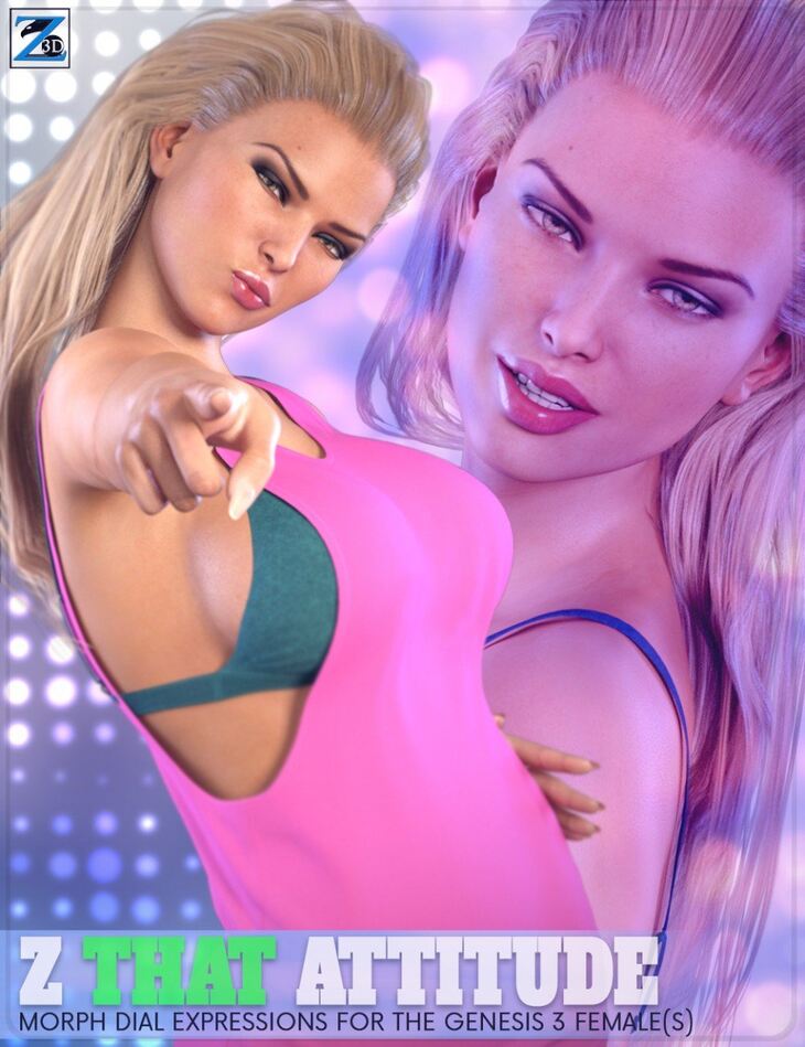 Sometimes all you need is some attitude! You can have it now with Z That Attitude - Morph Dial Expressions for the Genesis 3 Female(s).