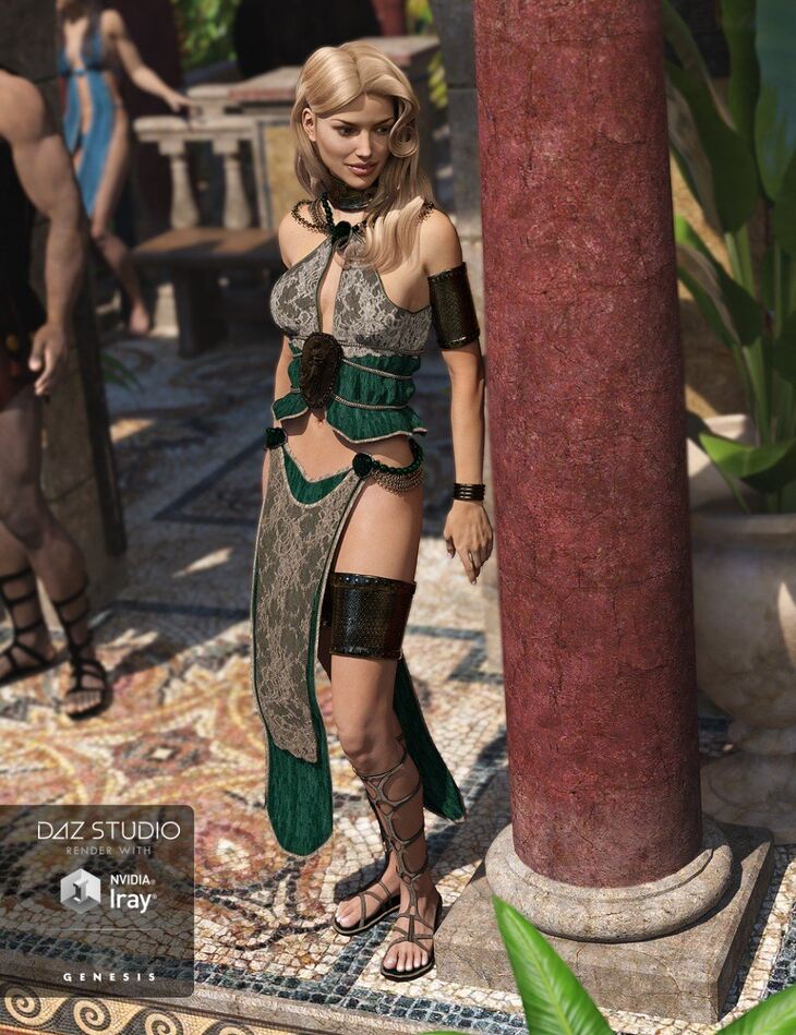 Zenobia for Genesis 3 Female(s) is a beautiful, sultry, versatile fantasy female outfit fit for a goddess, warrior or princess.