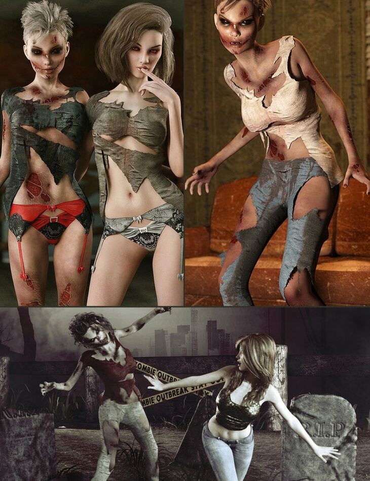 Zombie Bundle for Genesis 3 Female and Genesis 8 Female (Converted).
