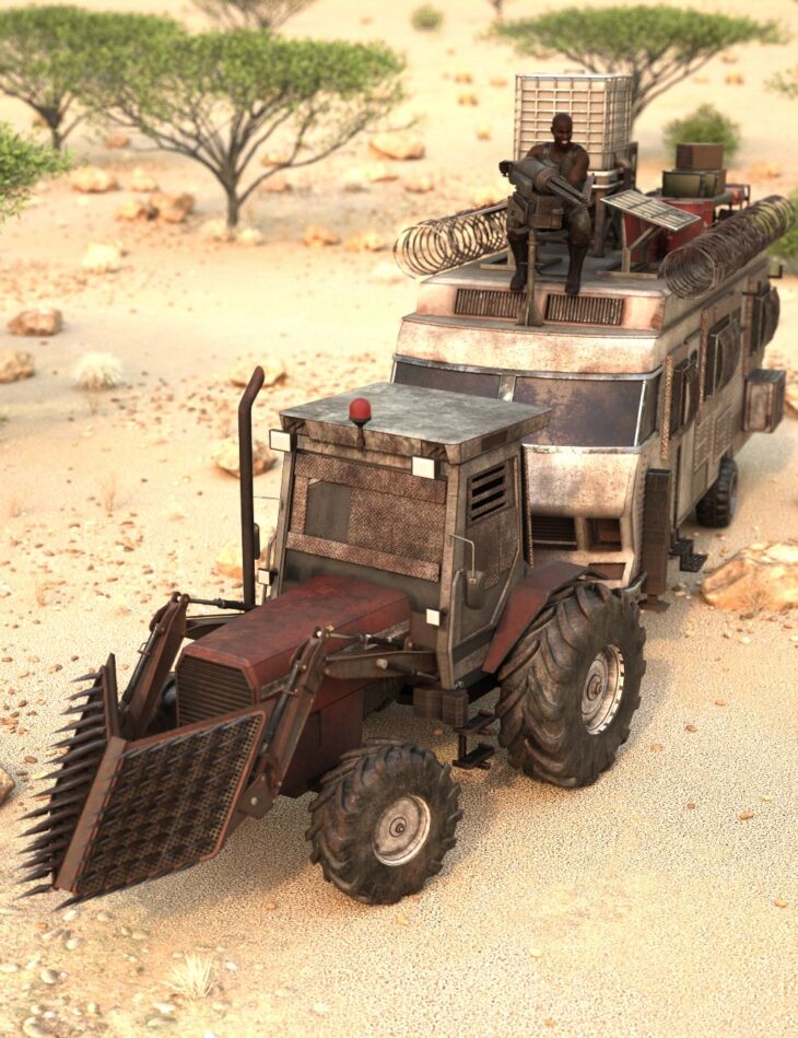 The set comes all the survival props, including a gun, generator, AC, water tank, etc. The set is also rigged for Tractor and RV movement. The lights have materials to turn them on and off.