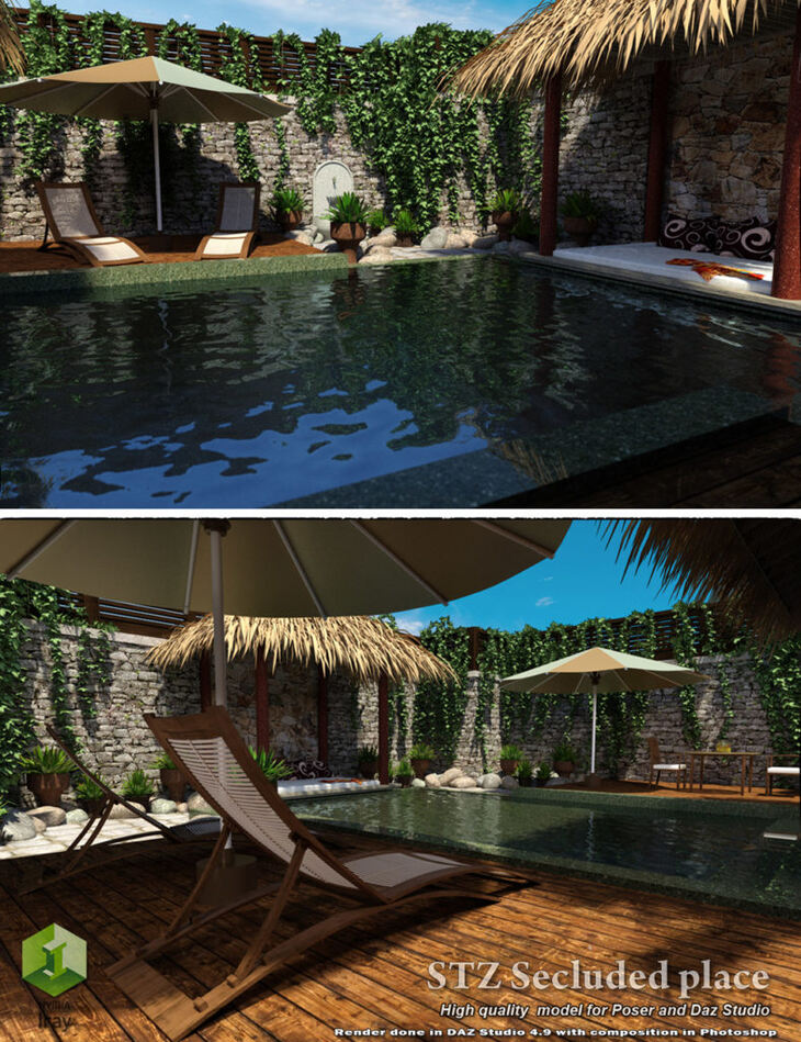 STZ Secluded place - Extreme quality hi polygonal models for Poser (FireFly only) and DAZ studio (Iray only).